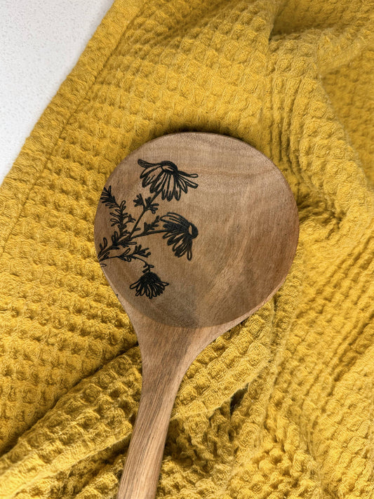 Floral Engraved Acacia Wood Spoon | Salad Spoon