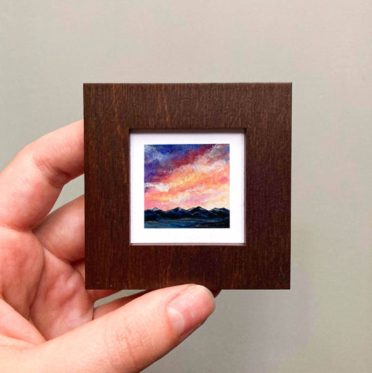 Mini 1" Pine Tree Forest Sunset Tiny Watercolor Landscape