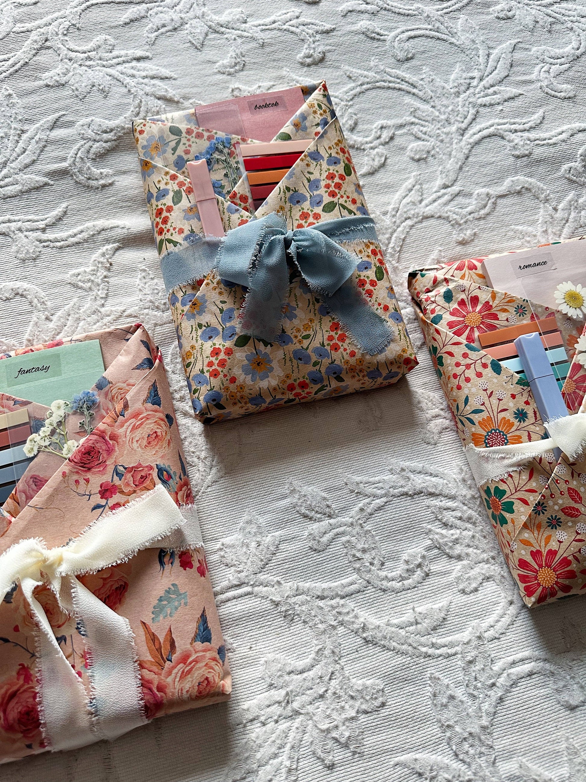 New book • an aesthetic highlighter to mark your favorite quotes • a pressed flower bookmark • book tabs to keep track of your annotations • sticky notes