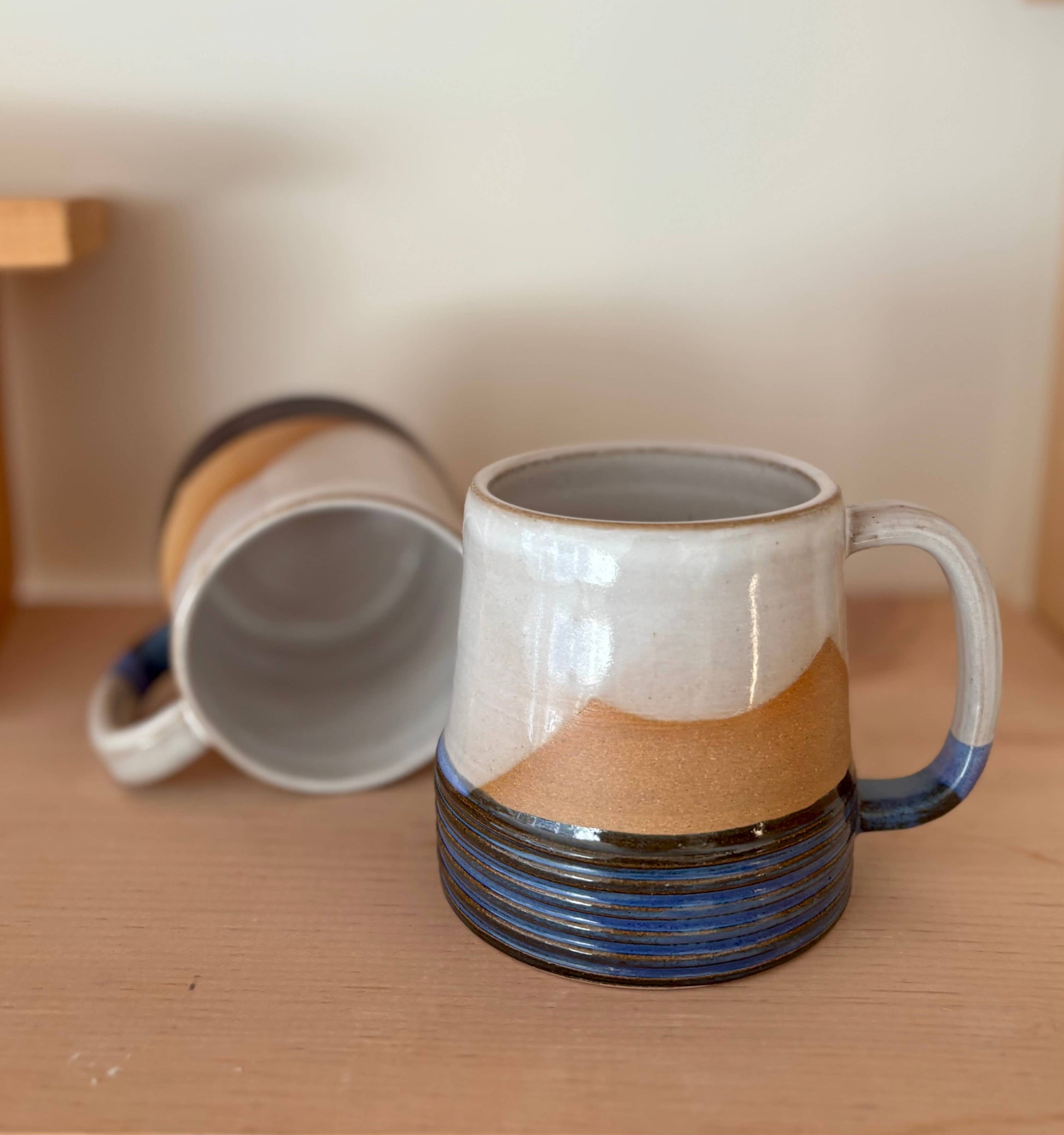 Inspired by architectural reeding and the natural rhythm of the landscape, this thoughtfully designed tumbler features a horizontal reeding design at the base, creating a unique texture to highlight the the nuances of the glaze. With special attention to the size and pitch of the handles, this mug is exceptionally comfortable to hold. Perfect for daily rituals or thoughtful gifting, each piece is hand shaped and glazed, an no two are exactly alike.