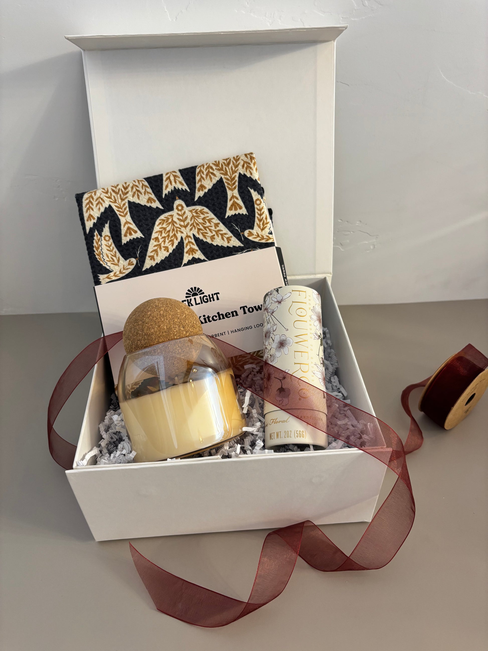 Bring warmth and comfort home. This gift set includes a curated mix of artisan goods like soy candles, luxe finishing salts, and handmade treats. Ideal for thank-you gifts, housewarmings, or anyone who loves a cozy night in.