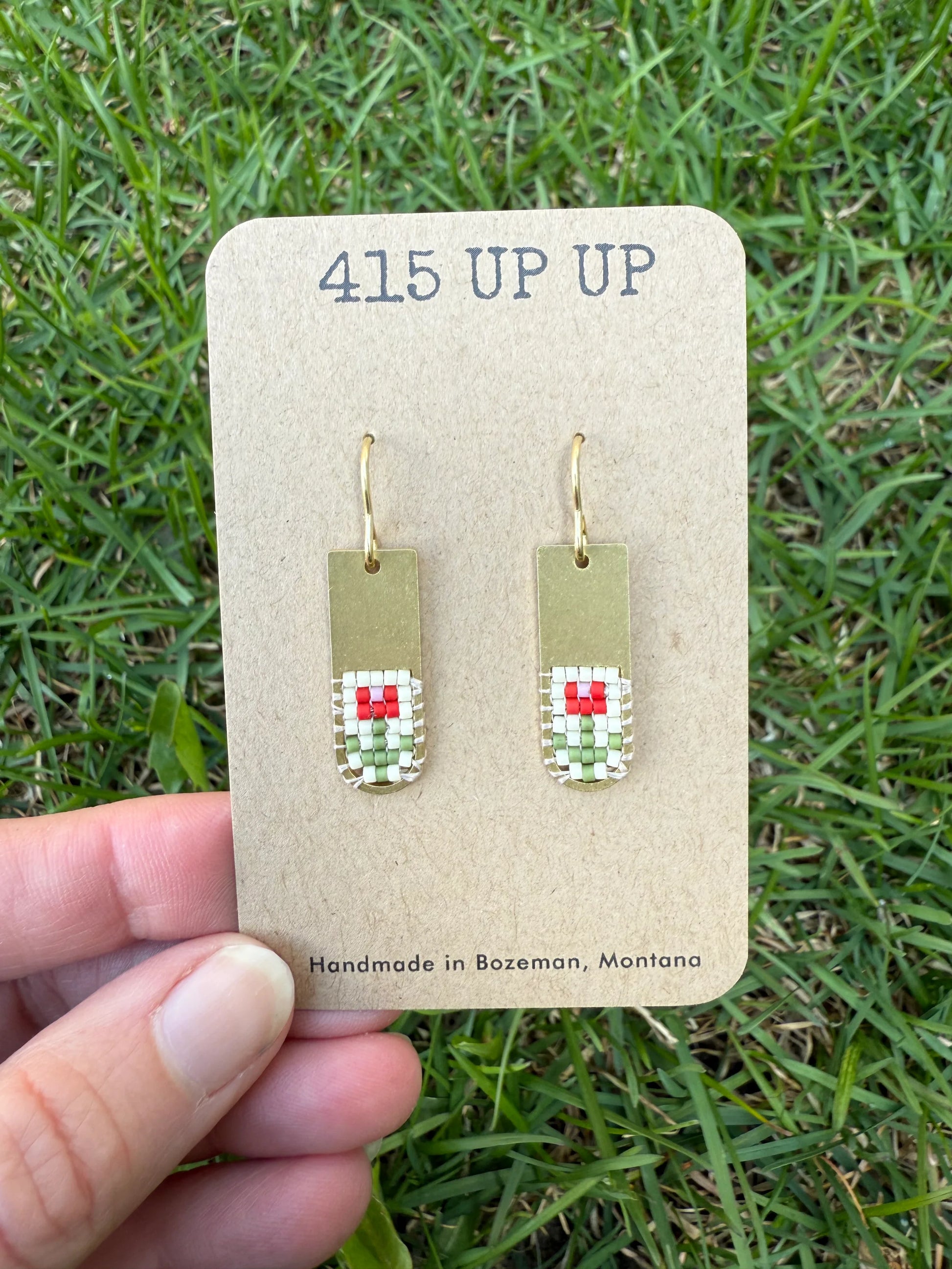 Introducing the newest design from The Up Up - sweet and smooth like honey. Made with brass hardware, brass ear wires and japanese delica beads. These measure about 1.5" and are very lightweight like the other styles you have come to know. Come in multiple colors.