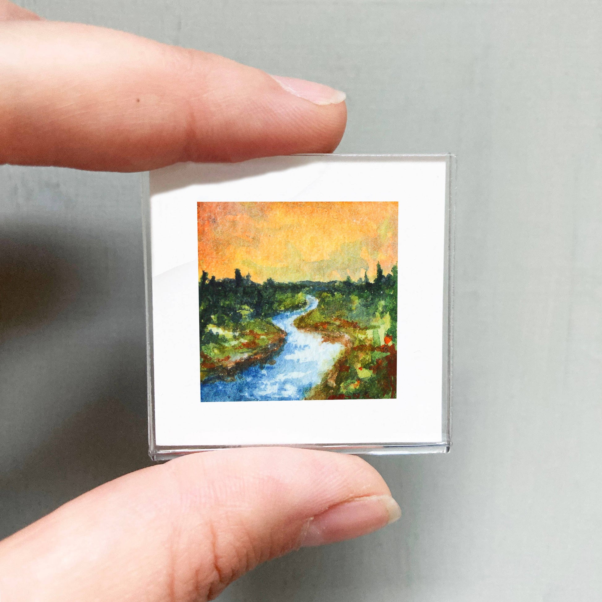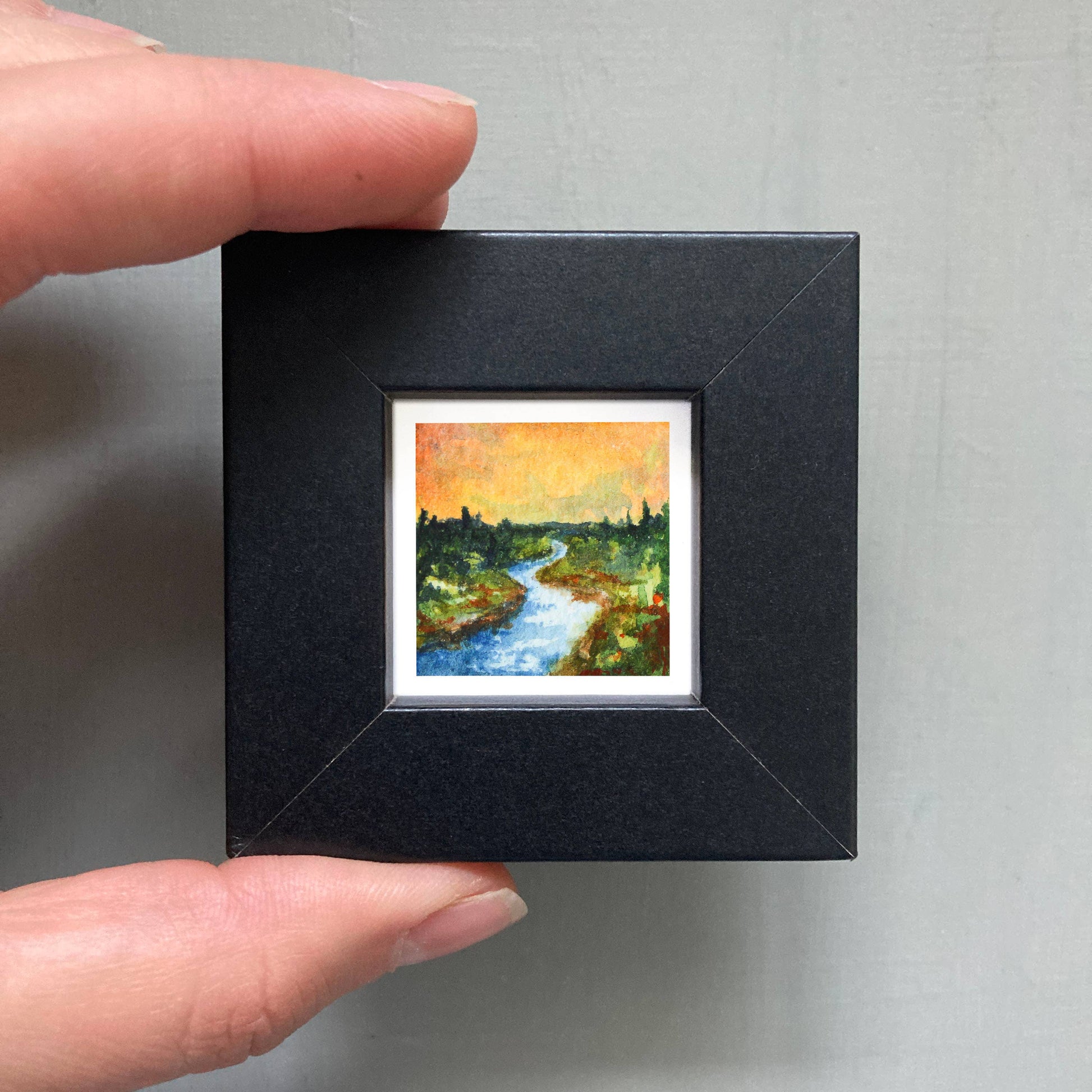 Mini 1" River Forest Tiny Watercolor Landscape Art Print