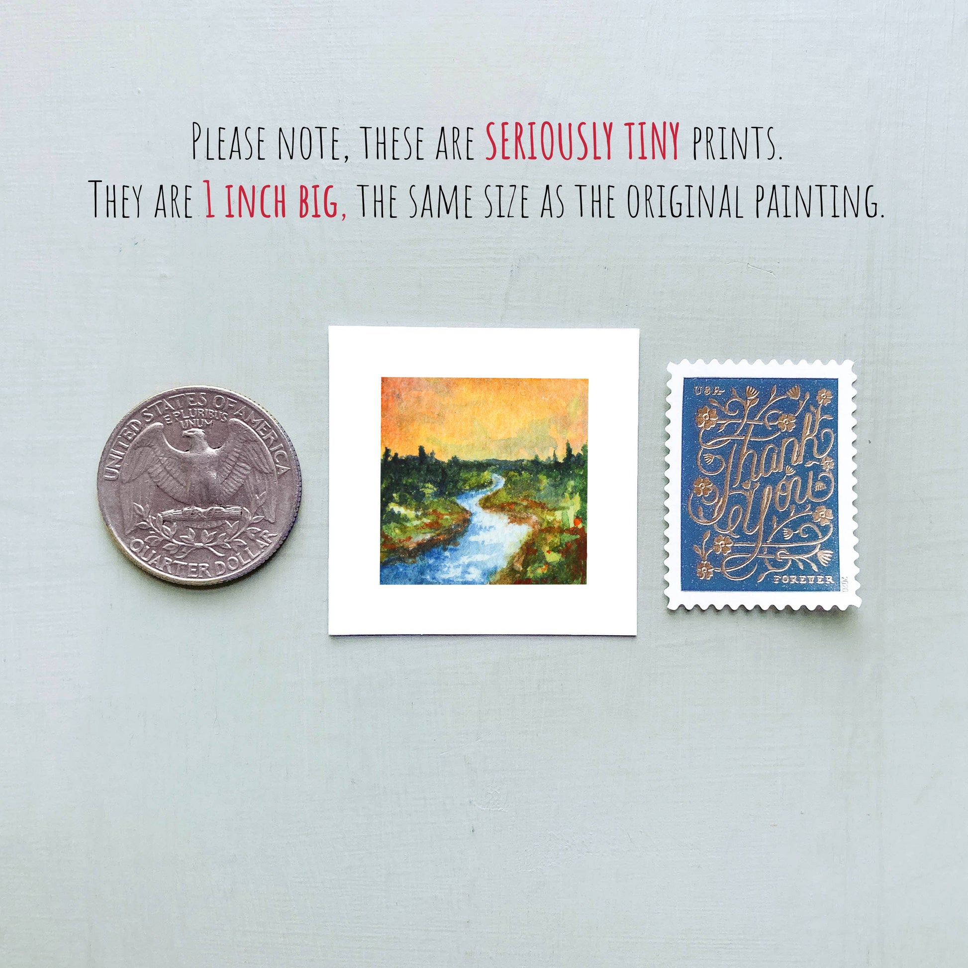 Most of my tiny art prints are the same size as the original painting.