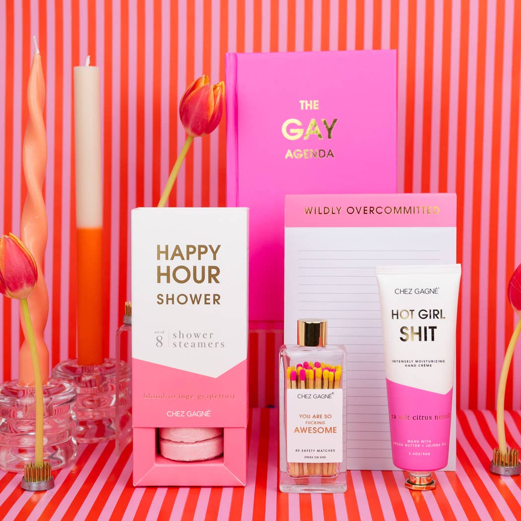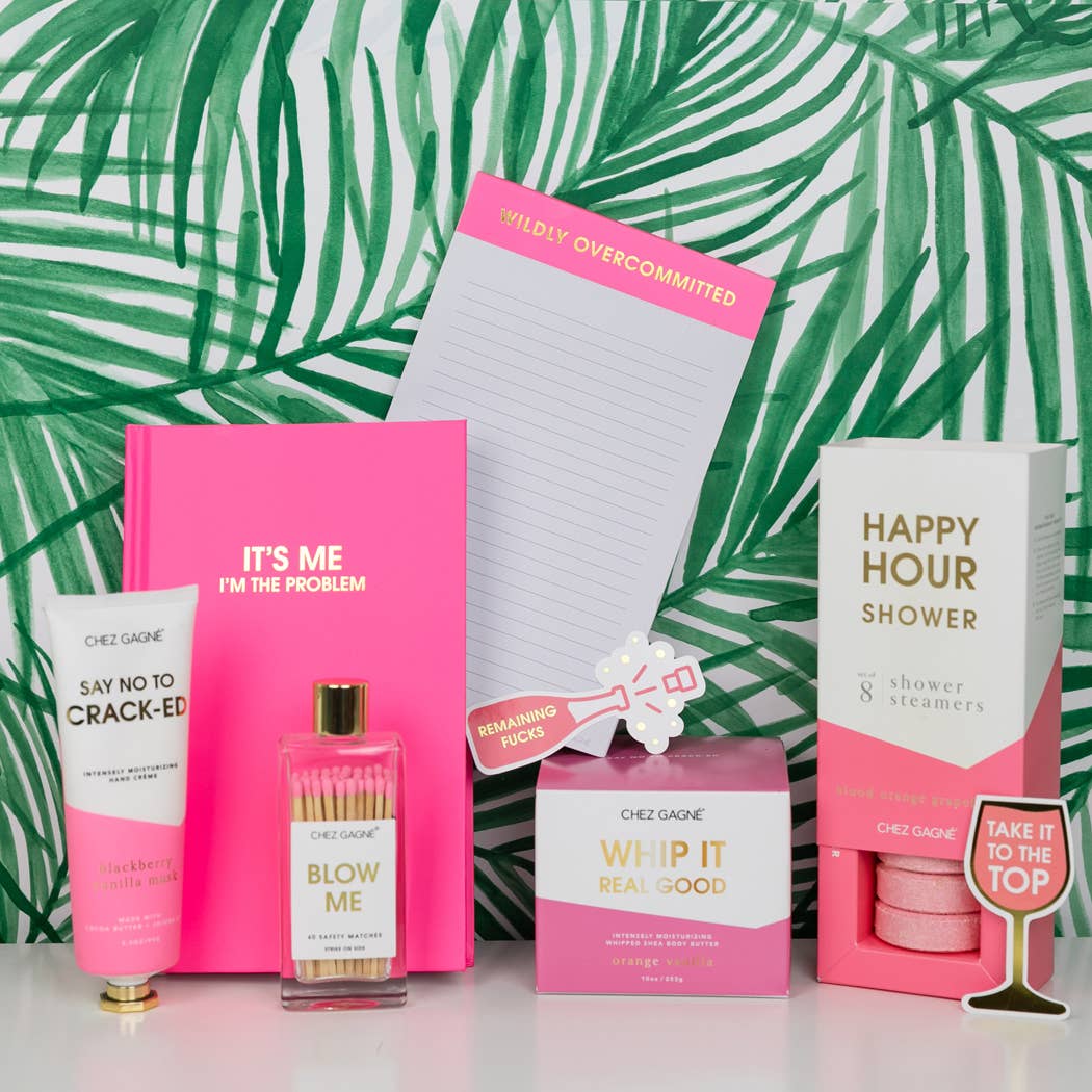 The Wildly Overcommitted Notepad is for the multitaskers who thrive on chaos (or at least make it look that way). With its bright pink cover and luxe gold foil phrase, this pad pairs humor with practicality — the perfect spot for to-dos, grocery lists, or the ten projects you promised to finish by yesterday.